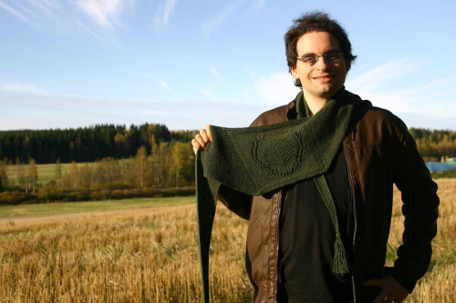 Halusin haastaa itseni ja suunnitella pitsihuivin miehille. Ongelma on kaikille tuttu: pitsi mielletään naisten jutuksi, vaikka miehet ovat käyttäneet pitsiä vaatetuksessaan vuosisatojen ajan. Tämä huivi on pitsistä huolimatta (tai nimenomaan pitsin takia) maskuliininen, mutta se sopii yhtä hyvin myös naisen kaulaan.