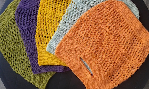 Tarkka neuletiheys ei ole oleellinen, valmis kassi venyy käytössä pituutta ja leveyttä.