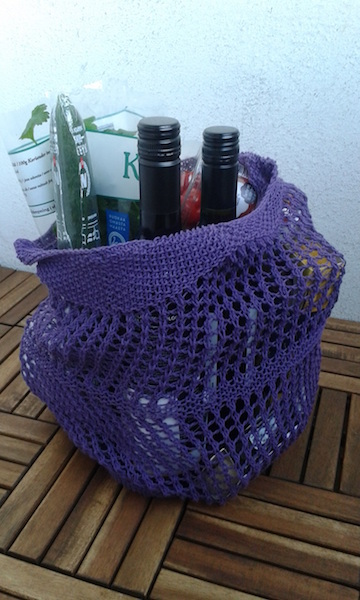 Omaan versiooni lisäsin tukevamman, virkatun pohjan ja leveän, muovikassimaisen sangan. Ja taas on maailma himpun verran parempi paikka, kun voi jättää edes jonkun muovikassin ostamatta!