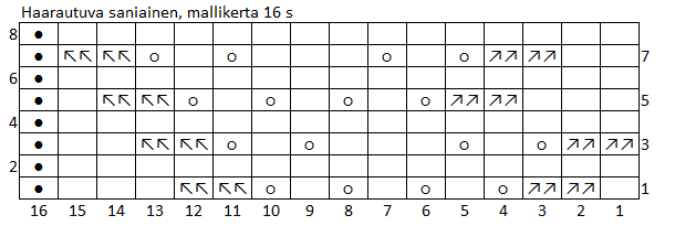 pyöröpuikoilla suljettuna neuleena. Pitsineule on sama kuin