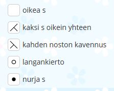 Silmukoiden poimimista varten vähintään 1 mm kapeammat ja päättelyä varten vähintään 1 mm paksummat pyöröpuikot, kuin millä neulot työn.