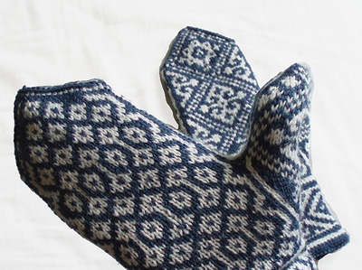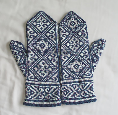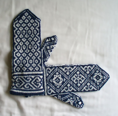 Näihin lapasiin sain idean kuvioista, jotka ovat Richard Ruttin kirjassa History of Hand-Knitting. Alunperin kuviot ovat sinivalkoisista egyptiläisistä sukista, jotka ovat peräisin 1200- ja 1500-lukujen väliseltä ajalta.