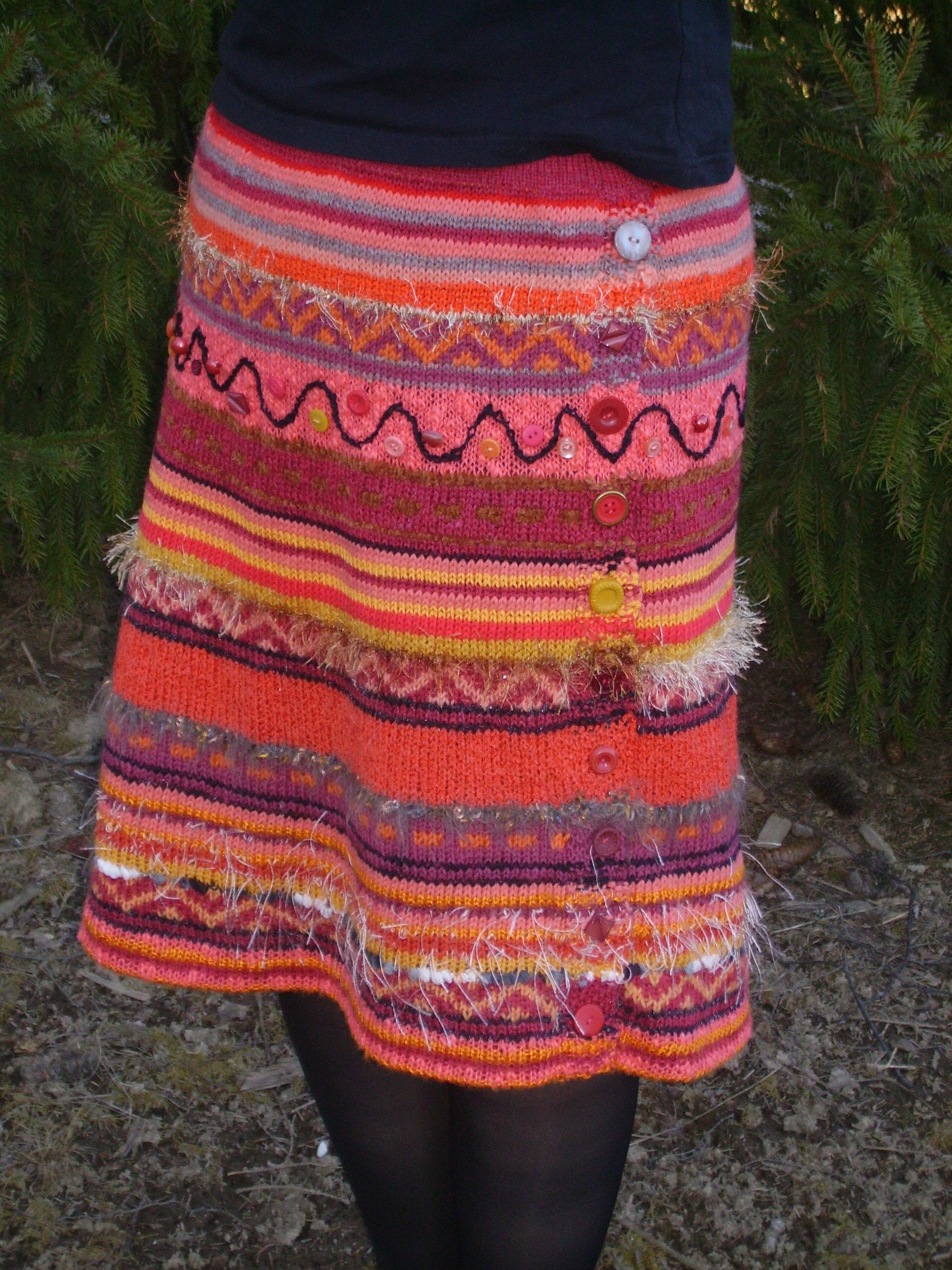 Värisävy ja raidoitus tuovat mieleen etelän kangaskuosit, ja ”otetaan mitä on ja tehdään mitä tulee” –periaate tekee mallista kansanomaisen.