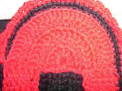 Jos jämälankoja on vain pieniä nöttösiä, voit hyvin virkata kaikki suikaleet erivärisillä langoilla, samoin puoliympyrässä voit käyttää pieniäkin pätkiä. Koska patalappu virkataan kaksinkertaisella langalla, ei lankojen tarvitse olla saman värisiäkään.