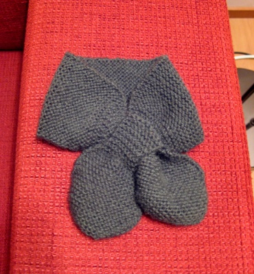 Jatka aina oikein, kunnes avaimenreiän jälkeen tuleva osuus ulottuu kaulan ympärille. Vauvan kaulaliinalle hyvä mitta on noin 22-25 cm. Meillä vauvaikäiselle neulotut kaulaliinat ovat tällä pituudella menneet vielä leikki-ikäisellekin.