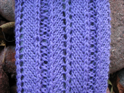 Toista näitä kahta kerrosta, kunnes varsi on halutun mittainen. Mummuni neuloo yleensä 50 kerrosta, jolloin varressa erottuu 25 reikäkerrosta.